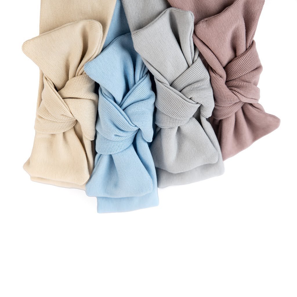 Dětská bavlněná čelenka s mašlí vyrobena z pružného materiálu, díky kterému je velmi pohodlná na nošení.